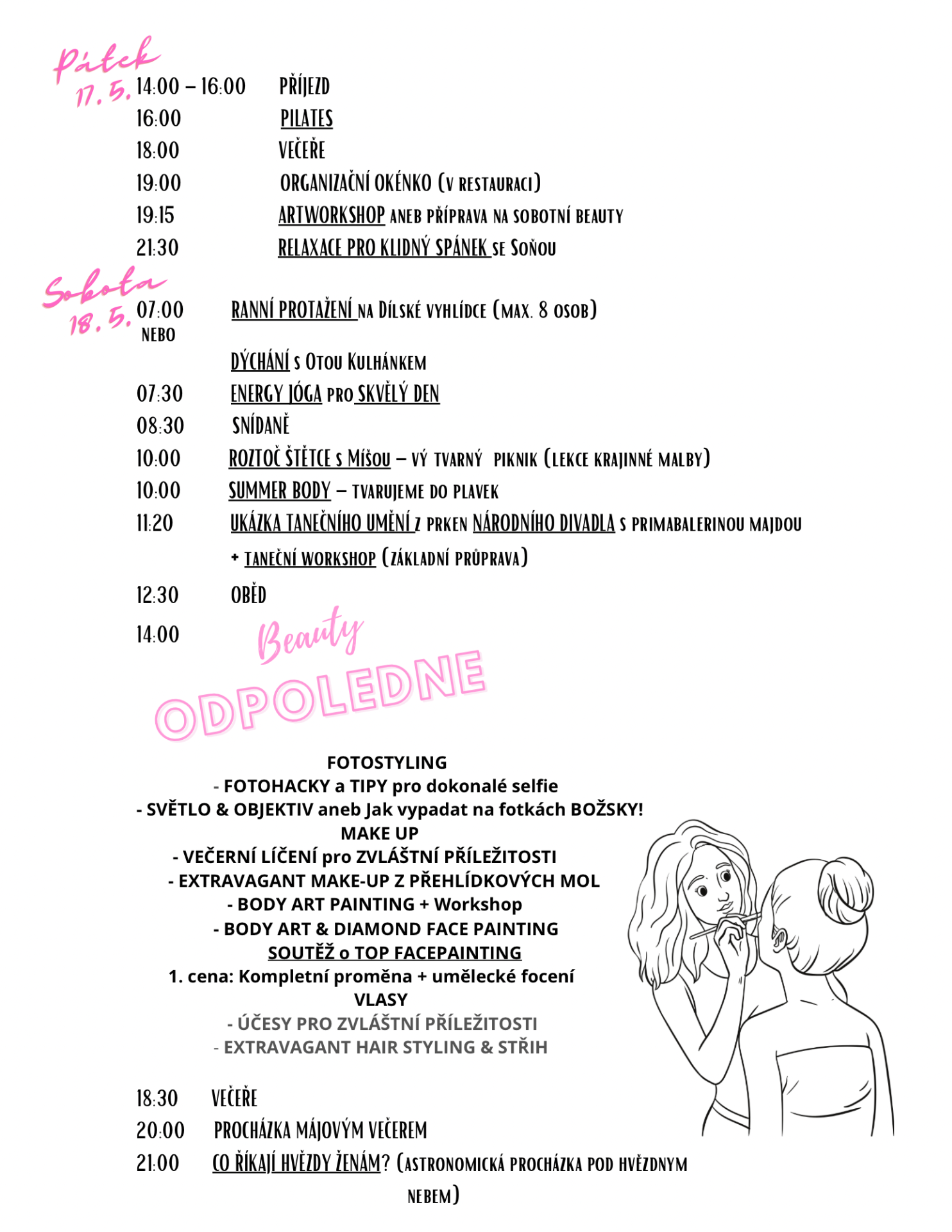 Nechybí ani víkendový program. Pro snažší orientaci jsme zvolily technickou verzi (čas/aktivita/místo/odpovědná osoba).